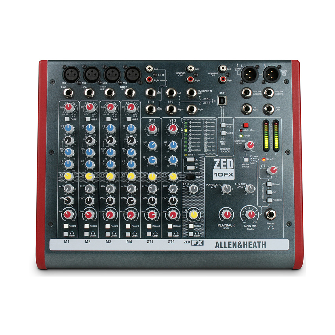 Allen & Heath presenta i suoi mixer più piccoli in produzione, lo ZED-10FX, parte della gamma ZED di mixer equipaggiati con collegamento USB per le performance live, registrazione e produzione. Lo ZED-10FX include un processore effetti con tap tempo delay e qualità di conversione A/D 24-bit/48kHz. Gli effetti presente vanno dai classici riverberi ai delay, o la combinazione dei due, fino ai flanger e chorus.