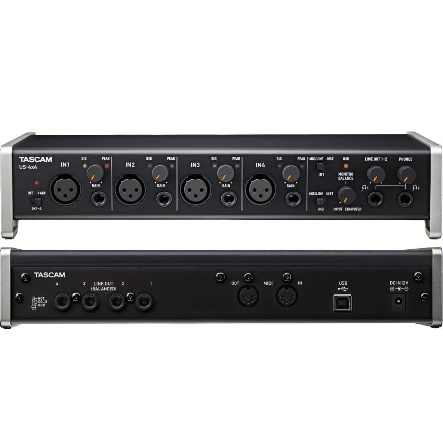 Il Tascam US-4x4 unisce una grande qualità audio ed un design ergonomico per una potente interfaccia audio USB2.0 4IN / 4OUT. Quattro preamplificatori mic/line Tascam Ultra-HDDA forniscono fino a 57dB di guadagno con rumore e distorsione praticamente impercettibili. Il design audio dotato di componenti musicali di elevate prestazioni come gli amplificatori operazionali NE5532 per una ricca qualità audio senza modificare il sorgente. L'US-4x4 include driver compatibili per il funzionamento plug-and-play su dispositivi Mac OSX e iOS come l'iPad, mantre un semplice driver aggiunge la compatibilità ASIO per Windows. MIDI IN e OUT sono inclusi anche per il collegamento di synth, drum machine e controller. L'interfaccia comprende due applicazioni DAW tra cui scegliere - Cakewalk SONAR LE X3 e Abelton Live Lite 9. Con caratteristiche audio solide, compatibilità iOS ed un design angolato facile da leggere, l'US-4x4 è l'ultima interfaccia a 4 canali per home, project e mobile studio.