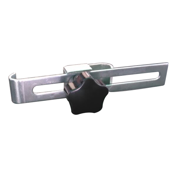 Gancio per unione di pedane della serie ZZTM. Permette di ancorare tra loro le gambe e formare una solida struttura composita. Ralizzato in metallo con regolazione a manopola.